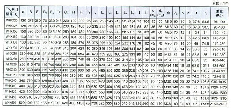 WHX圓弧齒蝸輪蝸桿減速機:WHX圓弧齒蝸輪減速機符合部頒標準JB2318-79,達到微型減速機制造的標準化、系列化要求,適用于冶金、礦山、起重、運輸、化工、建筑等各種機械設備的減速傳動。WHX圓弧齒渦輪蝸桿減速機安裝型式及尺寸: WHX型安裝尺寸